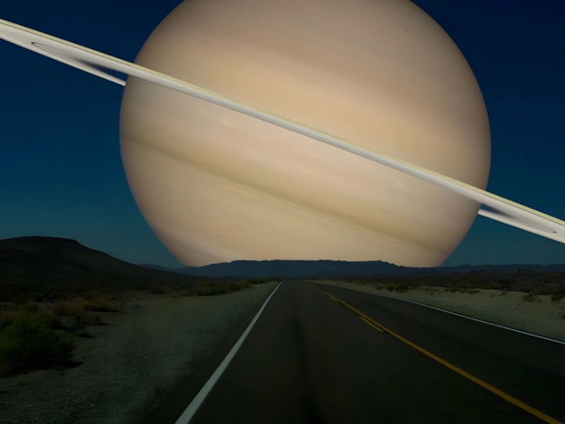 Saturn: A Cosmic Perspective Location: Outer space Estimated Cost: N/A Overview: Imagining a scenario where Saturn takes the position of the moon reveals a significant shift in our cosmic dynamics.