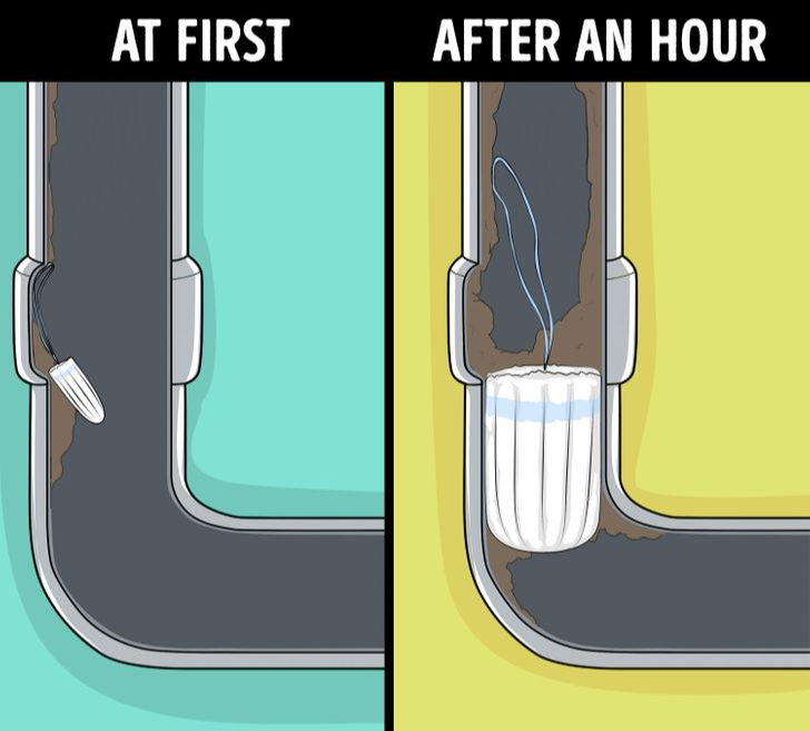 Damenhygieneprodukte wie Tampons und Binden sind dafür gemacht, Feuchtigkeit aufzunehmen. Genau diese Eigenschaft macht sie für den Abfluss ungeeignet. Im Wasser quellen sie auf und können Leitungen massiv verengen.