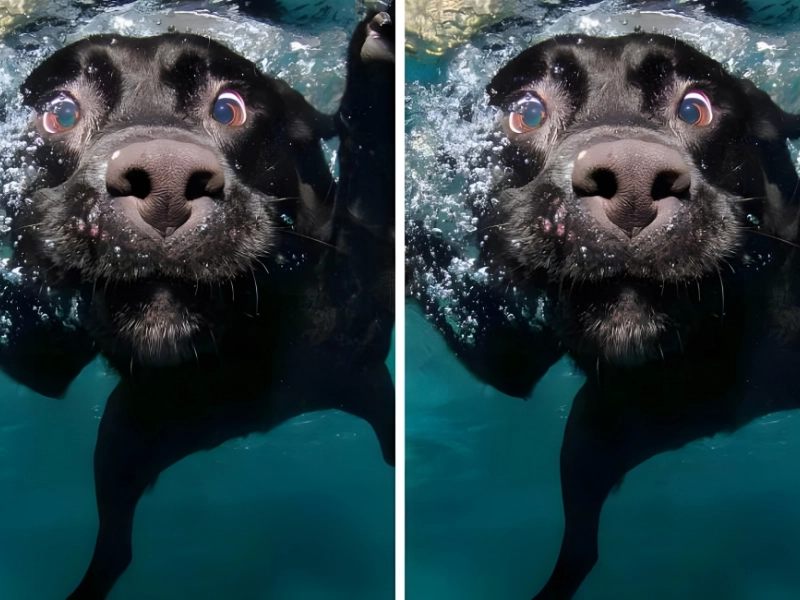 Dieser schwarze Labrador hält sich für eine Meerjungfrau – und wer will widersprechen? Kurz vor dem Abtauchen, die Augen weit vor Freude, wurde er im richtigen Moment erwischt.