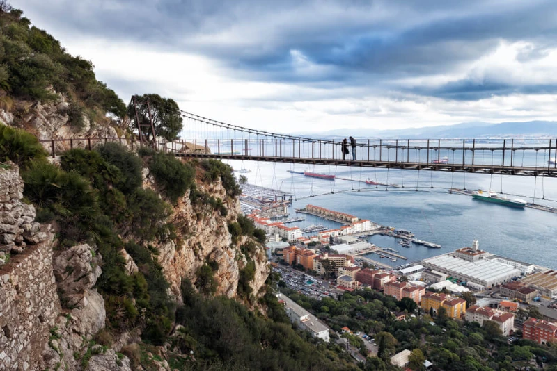 Die Windsor Bridge in Gibraltar bietet einen aussichtsreichen Spaziergang hoch über der Stadt; rund 50 Meter tiefer fällt das Gelände ab. Weitblicke über urbanes Panorama und Meer machen sie zu einem beliebten Ziel für Fotofans und Menschen, die besondere Perspektiven schätzen.