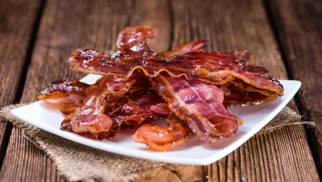Verarbeitete Fleischprodukte wie Speck, Würstchen oder Schinken enthalten häufig gesättigte Fette und viel Salz. Zwar liefern sie Eiweiß, doch genieße sie besser nur gelegentlich. Eine bekömmlichere Alternative sind Eier mit Vollkorntoast und frischem Gemüse.