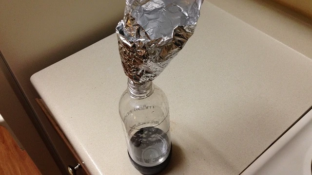 Fehlt ein Trichter rollen Sie ein Stück Alufolie zu einem stabilen Kegel und justieren die Öffnung. Flüssigkeit oder Pulver vorsichtig einfüllen. Nach Gebrauch kann die Folie recycelt werden. Flexibel und schnell hergestellt.