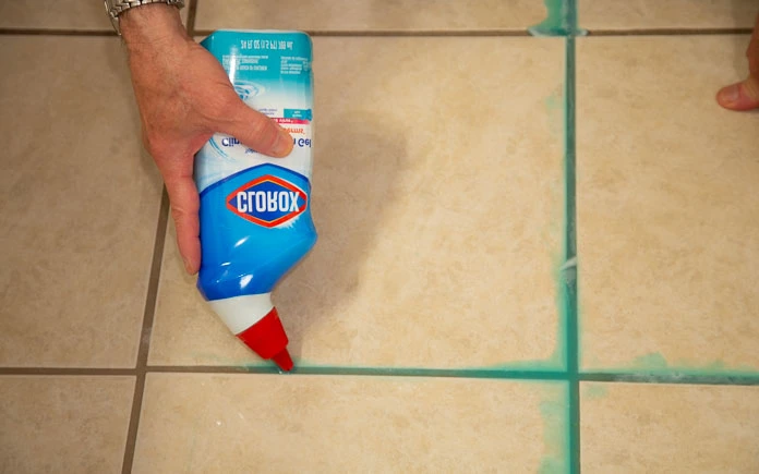 15. Fugen mit WC Reiniger auffrischen
