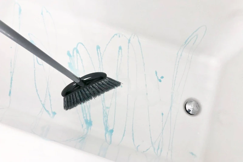Das Reinigen einer Wanne muss nicht anstrengend sein. Sprühen oder verteilen Sie etwas Geschirrspülmittel gleichmäßig auf der Oberfläche und nutzen Sie einen sauberen Besen mit langem Stiel. Die Borsten lösen Seifenreste und leichte Kalkablagerungen während die aufrechte Haltung Rücken und Knie schont. In kreisenden Bewegungen arbeiten bis Schmutz gelöst ist anschließend gründlich mit klarem Wasser spülen. Dadurch entsteht eine gleichmäßig saubere und angenehm frisch riechende Oberfläche.