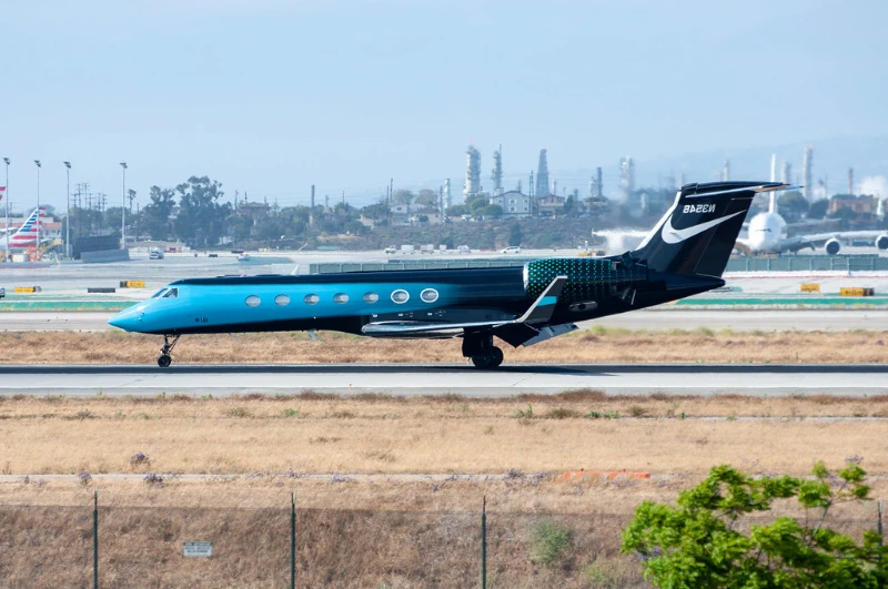 Nikes individuell lackierte Gulfstream G550 ist ein fliegendes Statement für Marke und Kreativität. Der dynamische Farbverlauf von Dunkelblau zu Hell, kombiniert mit dem ikonischen Swoosh und dem Claim „Just Do It“, macht den Jet zu einem starken Markenbotschafter. Das Design spiegelt den Anspruch auf Exzellenz und Innovation wider und verleiht dem Flugzeug eine globale Strahlkraft.