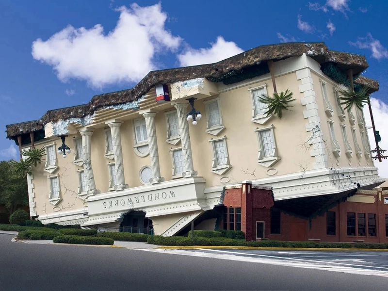 1.WonderWorks: An indoor amusement park in Orlando, Florida that is housed in an upside-down building.