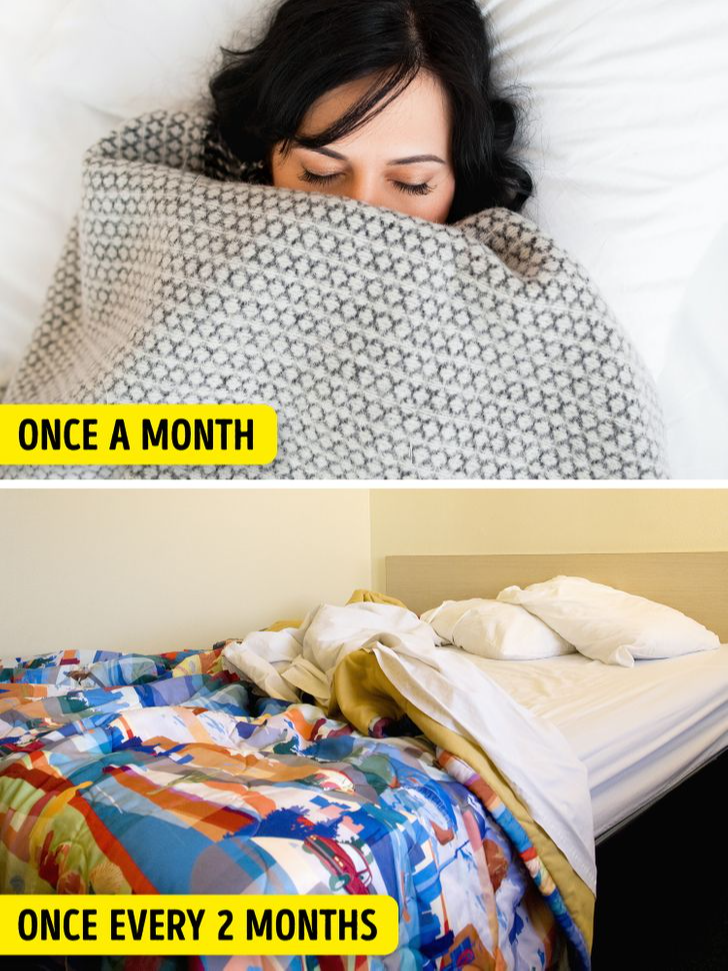 Decken werden häufiger genutzt; der Turnus hängt von Nutzung und Vorlieben ab. Als Richtwert gilt: mindestens einmal im Monat waschen und bei sichtbarer Verschmutzung oder Gerüchen sofort reinigen.