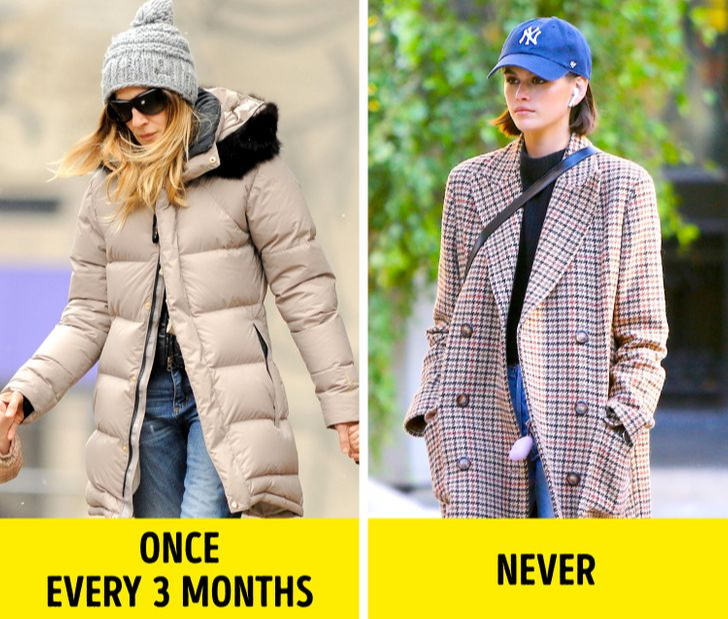 Jacken sollten, da sie selten direkt auf der Haut liegen, in kaltem Wasser gewaschen werden – höchstens einmal alle drei Monate. Ein paar saubere Tennisbälle in der Maschine verhindern, dass Daunen oder Füllungen verklumpen, und erhalten die Form.