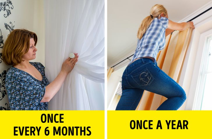 Tüllvorhänge nehmen schneller Staub auf und sollten etwa alle sechs Monate gewaschen werden. In Küchen oder Räumen mit stärkerer Belastung empfiehlt sich ein kürzerer Rhythmus, um die Frische zu bewahren.