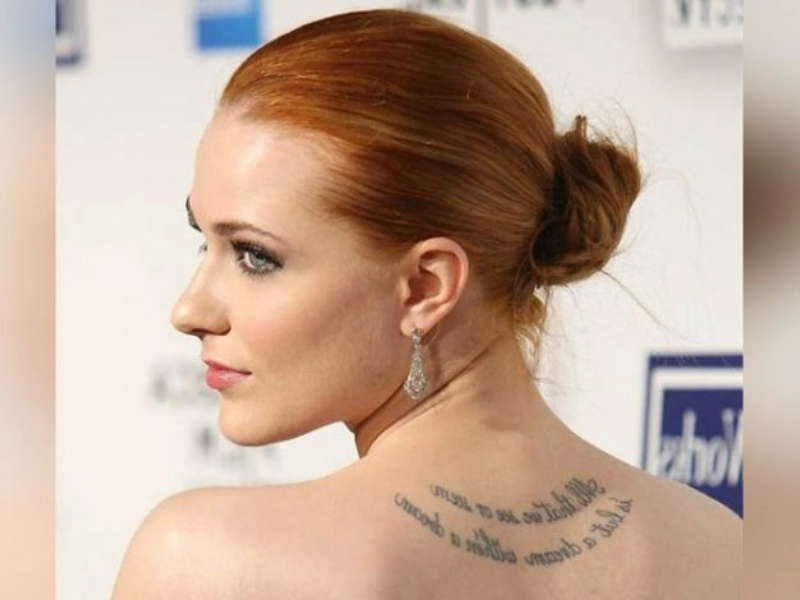 Evan Rachel Wood: Literarische Tattoos Evan Rachel Wood trägt am Rücken ein Zitat von Edgar Allan Poe Is all that we see or seem, but a dream within a dream. Es zeigt ihr Interesse an Fragen nach Wirklichkeit und Wahrnehmung.