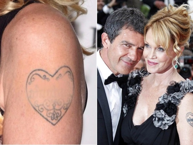 Melanie Griffith trug während ihrer Ehe mit Antonio Banderas den Namen ihres Partners mit Herz am Arm. Nach der Trennung ließ sie das Motiv entfernen, als sichtbare Entscheidung für einen Neustart.