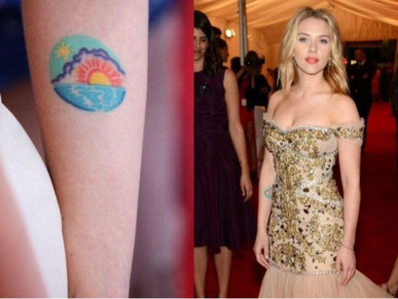 Scarlett Johansson: Ausdrucksstarke Körperkunst Scarlett Johansson ist für Tattoos an Handgelenken, Knöcheln, Rippen und Unterarmen bekannt. Besonders sticht eine farbenfrohe Morgendämmerung auf ihrer linken Hand hervor, die Hoffnung und Aufbruch symbolisiert. Dieses Motiv verleiht ihrer Sammlung Energie und spiegelt ihren kreativen Geist wider.