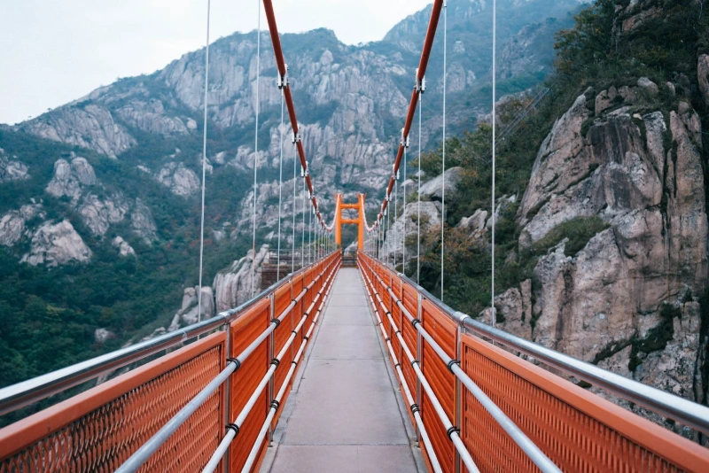 Die Brücke wurde als Teil der Wanderwege des Parks gebaut und ist stabil, mit hohen Geländern für Sicherheit. Besonders im Herbst ist die Landschaft beeindruckend, was die Brücke zu einem Favoriten für Fotografen und Naturliebhaber macht.