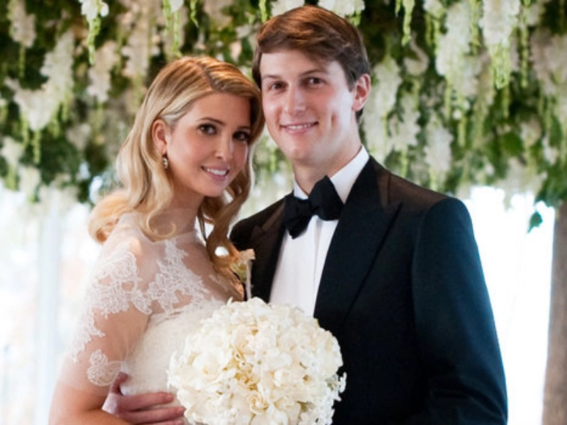 Ivanka Trump wählte für ihre Hochzeit ein Kleid von Vera Wang mit feinen Details und einer edlen Silhouette. Das elegante Design und die bekannte Handwerkskunst ließen sie erstrahlen und unterstrichen ihren klassischen Stil.