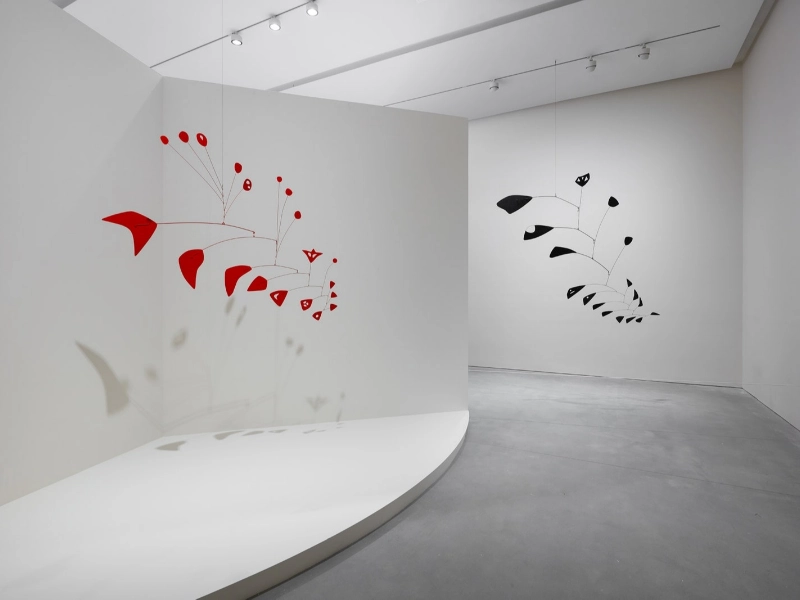 Alexander Calder führte Bewegung bewusst als Gestaltungselement ein. Seine Mobile reagieren auf leichte Luftströmungen und erzeugen ruhige Veränderungen aus Farbe Form und Rhythmus. Die fragile Ausgewogenheit macht uns aufmerksam auf Gleichgewicht Prozesse und eine angenehme Offenheit gegenüber Veränderung.