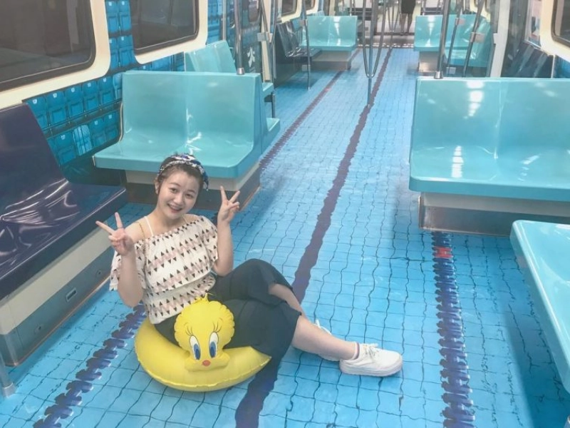 Für Träumerinnen und Träumer ist die U-Bahn ein Ort voller Möglichkeiten. Diese fantasievolle Person verwandelte ihren Platz in ein improvisiertes „Schwimmbecken“ – mit Requisiten und spielerischer Haltung. So wurde der Wagen zur kleinen Wohlfühloase und zur Einladung, die Welt mit frischem Blick zu sehen.