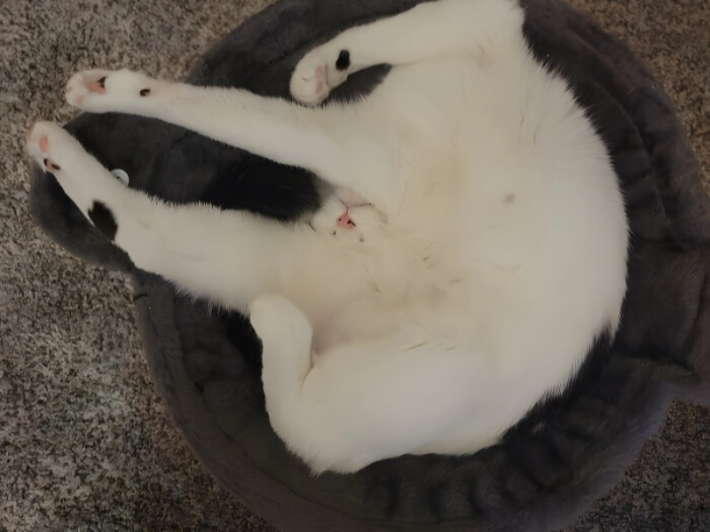 Katzen besitzen beeindruckende Fähigkeit den Körper in sonderbare Formen zu verwandeln besonders im Schlaf. Diese Katze hat sich so verdreht dass Anfang und Ende kaum zuzuordnen sind.