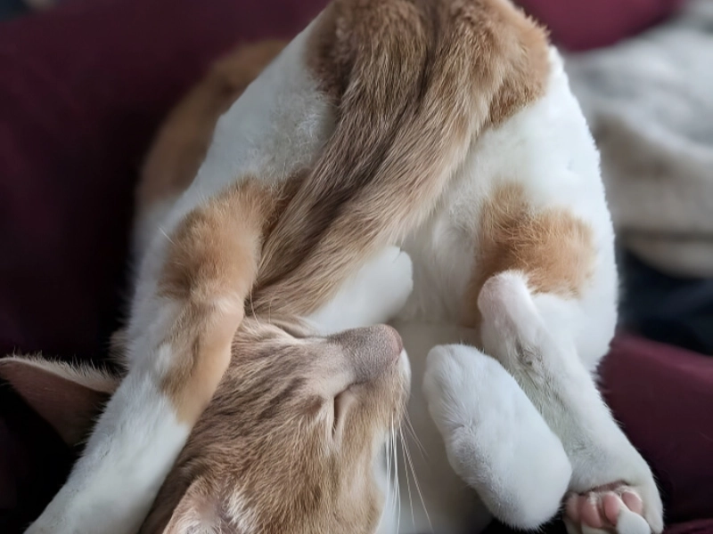 Yoga ist weltweit beliebt doch Katzen beherrschen elastische Balance schon seit Generationen. Diese Samtpfote bringt Entspannung auf eine neue Stufe indem sie in einer Pose einschläft die selbst Geübte herausfordern könnte.