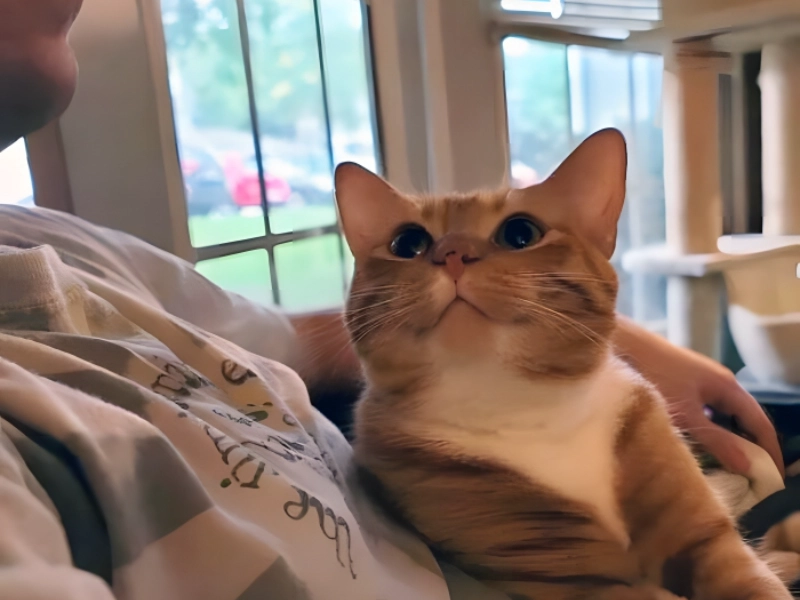 Häufig wird die Person die anfangs am skeptischsten gegenüber einem Haustier war zum größten Fan. Hier schaut die Katze ihren Menschen mit reiner Zuneigung an und zeigt wie innig Vertrauen wachsen kann.