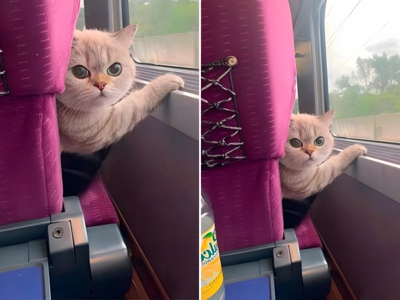 Statt eines genervten Menschen begegnete ihr jedoch der frostige Blick einer Katze deren Geduld offenbar schwand. Der Ausdruck dieser Fellpersönlichkeit war so intensiv als würde sie eine förmliche Entschuldigung oder wenigstens ein paar Leckerchen verlangen. Einige sanfte Streicheleinheiten könnten vielleicht den verletzten Stolz dieses pelzigen Mitreisenden besänftigen und die Situation entspannen.