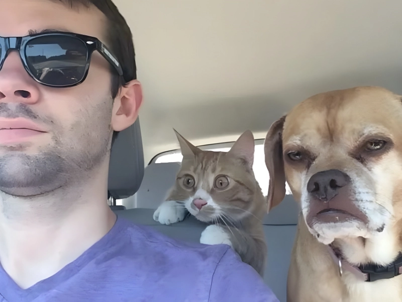 Mögliche Kamera Google Pixel Kauforte Best Buy Google Stores Preis 400–1,200* Das Foto trägt die Bildzeile Lass uns fahren und wirkt wie Beginn eines abenteuerlichen Ausflugs. Der Hund wirkt fokussiert die Katze etwas angespannt zusammen entsteht ein Motiv das an einen Film über eine ungewöhnliche Reise erinnert.