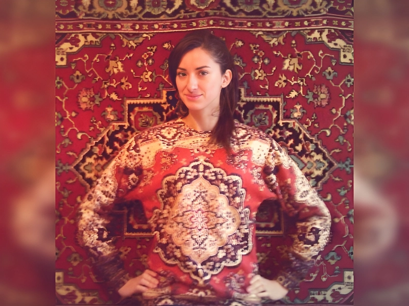 Sie hat ihren perfekten Teppich gefunden. Kleidung und Boden passen so gut zusammen, dass sie fast darin aufgeht. Ein amüsanter Hinweis darauf, dass die beste Übereinstimmung manchmal direkt zu unseren Füßen liegt.
