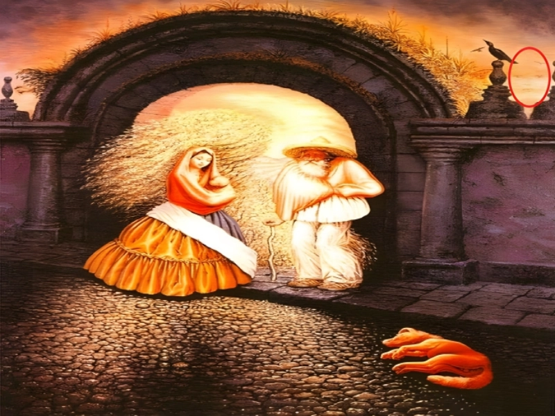 Dieses Gesicht ist am schwersten zu bemerken. Vögel bilden hier die Illusion eines Gesichts und formen Nase und Augen. Es liegt versteckt zwischen zwei anderen Gesichtern und wird leicht übersehen, wenn man nicht sehr konzentriert sucht.