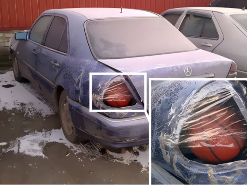 Das ist wohl der kreativste Versuch, ein kaputtes Rücklicht zu „reparieren“. Rotes Klebeband kennt man, doch diese Lösung geht noch einen Schritt weiter. Eine rote Plastikflasche bedeckt zwar die Öffnung, wird aber als Bremslicht kaum funktionieren. Eher stiftet sie Verwirrung bei anderen Verkehrsteilnehmern.