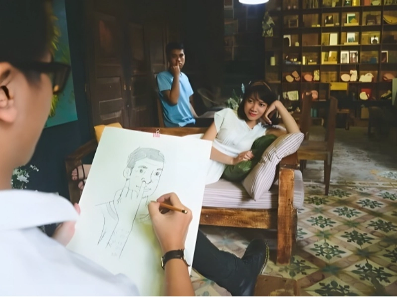 Die Situation spielt mit Erwartungen und zeigt, wie unvorhersehbar Straßenkunst und Beobachtung sein können. Vorne die Kundin, die sich Mühe gibt – und der Blick des Künstlers wird von einem ungestellten Moment abgelenkt. Diese Wahl verrät, was uns wirklich fesselt: das Echte, Ungeschönte. Dass die Zeichnung den Hintergrundmann nicht perfekt trifft, macht es noch witziger. Kunst wie das Leben: überraschend, unberechenbar und voller kleiner Geschichten.